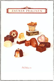 Im Jahre 2003 verwirklichte ich vor Ort einen der „süßesten“ Aufträge meiner bisherigen Karriere. In der Esplanade der weltweit bekannten Konditorei Zauner in Bad Ischl sitzend, zeichnete und malte ich die 15 bekanntesten Kreationen dieses Hauses.