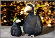 Christines Raku-Raben haben eine ähnliche Evolutionsgeschichte hinter sich wie Reinhards Mandl. Aktuell sind Vögel mit Hut und Feder ganz im Trend - ob klein oder größer freuen sie sich vor allem zur Weihnachtszeit über ein warmes Plätzchen. Mit einer Körperhöhe zwischen ca. 7 und 30 cm finden sie sogar auf dem Kaminsims Platz.